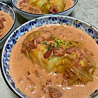 ロールキャベツに生クリーム入れるのは初めてでした。スープが多くできるのでロールキャベツを食べた後にチキンを焼いてスープをかけて食べました。2回楽しめました。