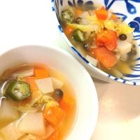 ほっこり温まる優しい味わいのコンソメスープです。じっくり煮込むことで大根とにんじんがホクホク柔らかく、野菜の自然な甘みが凝縮されています。オリーブオイルで野菜を炒めてから煮込むとコクがアップ!野菜はゴロゴロ大きめに切って食べ応えたっぷりに。しょうゆを加えることで和風な風味も楽しめ、お子様からご年配の方まで幅広く喜ばれる一品です。