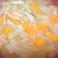 - 3 鍋に1、2、水を入れ、蓋をして中火で加熱します。沸騰したら弱火にして、コンソメ顆粒を入れて20分煮ます。