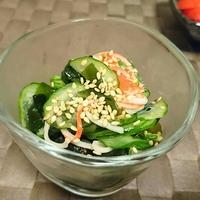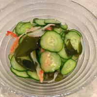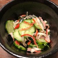 きゅうりとカニカマの酢のものはいかがでしょうか。きゅうり、カニカマ、わかめを使った定番の酢のものに、隠し味としてすりおろしニンニクを加えてみました。あっさりとしているので、箸休めにもおすすめですよ。ぜひお試しくださいね。