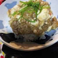 - 3 フライパンにごま油、(A)を入れて弱火で加熱し、香りが立ったら2、豚ひき肉を加え、ほぐしながら肉の色が変わるまで炒めます。