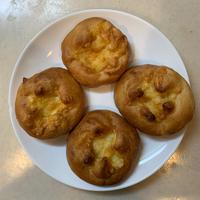 変更点∶一次発酵までHB、ドライイーストは3g、5個に分割、オーブンは200℃で予熱してから210℃15分。