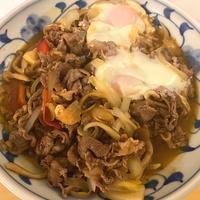 - 5 3と卵を入れ、牛こま切れ肉に火が通る程度に中火で煮て卵が半熟状になったら出来上がりです。