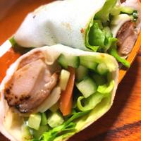 しっとりとした鶏ささみ肉とサラダをトルティーヤ生地でクルっと巻きました。一度にいろんな味が楽しめますよ。季節の野菜を入れてアレンジしてもいいですね。みんなでわいわい手巻き寿司の様にお好みで巻いても楽しいですよ。ぜひお試しください。