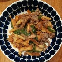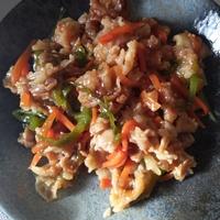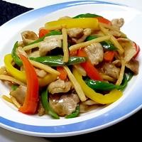 パプリカ苦手で野菜はピーマン、たけのこで作りましたー😇 最高にうまい!!