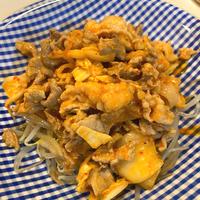 (豚肉→牛バラ肉、えのき→ピーマンと長ねぎ に変更しました)