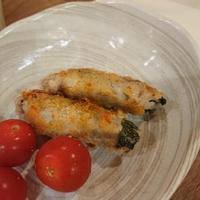 自分用メモ:スライスチーズがなかったので、ピザ用チーズにして一枚で巻きました。はがれないように小麦粉使用。塩コショウもしました。大葉苦手な息子もパクパク食べてました。リピート決定!
