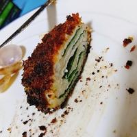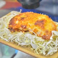 豚肉と香り高い大葉をミルフィーユ状に仕上げた一品です。とろ〜っととろけたチーズが豚肉に絡まり、口の中でおしさ広がります。そのまま食べてもおいしいですが、お好みで中濃ソースをかけてお召し上がりください。