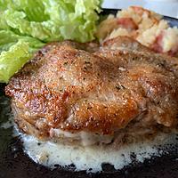 - 6 中火に熱したフライパンに有塩バターを溶かし、5を入れて蓋をし、豚肩ロースに火が通るまで8分程、時々返しながら焼き、火から下ろします。