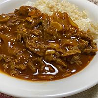- 4 弱火にし、野菜ジュースを入れます。全体がなじんだら(B)を入れ中火にして加熱し、沸騰して牛こま切れ肉に火が通るまで煮込みます。