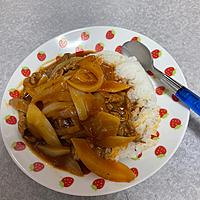 - 3 一度フライパンを洗い、サラダ油を入れ中火で加熱し、1を入れ半透明になるまで炒め、2を入れさっと炒め合わせたら、(A)、デミグラスソースを加えます。