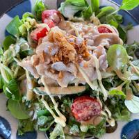 たっぷりの野菜と一緒に楽しめる、ごまの香ばしさと豆板醤のピリ辛が効いた爽やかな一品です。サラダ感覚で楽しめる上、鶏肉は柔らかくジューシー。鶏もも肉や豚しゃぶなど、お好みのお肉でアレンジも可能です。さっぱりとした酢の酸味とごまだれの相性が抜群で、暑い日にもぴったり。レタスやきゅうり、トマトなど野菜をモリモリ食べられるヘルシーメニューです。