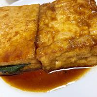 厚揚げに切り込みを入れて大葉とチーズをはさみました。醤油、みりん大1とにんにくを少し入れました。おいしかったです。