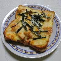 - 5 食パンに4、ピザ用チーズをのせます。アルミホイルを敷いた天板にのせ、オーブントースターでチーズが溶けるまで3分程焼きます。