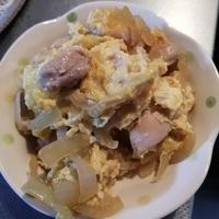 メモ(二人分):鶏モモ250g、玉ねぎ半分、三つ葉2束、めんつゆ2倍大7、水150ml、卵小さめ3つ
