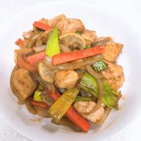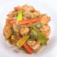 - 3 中火に熱したフライパンにごま油をひき、2を入れこんがりするまで揚げ焼き、火が通ったら(A)を加えて少しとろみかつくまで炒めます。