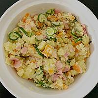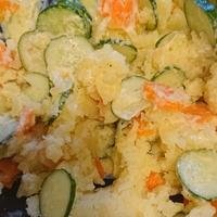 シンプルな味つけのポテトサラダです。味はもちろん、にんじんときゅうりを入れていますので、色鮮やかで見た目もお楽しみいただけます。電子レンジを使用するので、加熱中に他の料理を作ることができ、時短にもなりますよ。