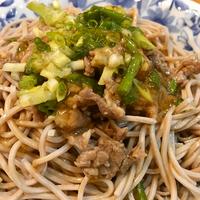 甘辛く味付けされた豚こま肉とつるっとした蕎麦の相性が抜群です。卵黄ソースのまろやかさが加わることで、より一層味わい深い一品に仕上がります。さっぱりとした冷たい蕎麦は暑い季節にぴったり。お好みでゴマ油をかけたり、大根おろしを添えたりとアレンジも楽しめます。作り方も簡単で、蕎麦を茹でて肉を炒めるだけなので、暑い日のお手軽メニューとしておすすめです。