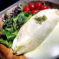 中からとろっと卵黄が溢れ出して、絡めて食べるとチーズソースと卵黄の濃厚さ、卵白焼きの淡白さ加減がいい感じに丁度よく相まってとっても美味しい逸品になりました。