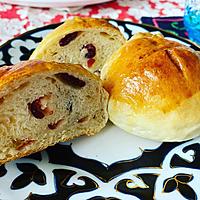 自宅にドライクランベリーが余っていたのでフルーツはクランベリーのみで作ってみました。切り込みを入れるのが難しかったですが、それ以外は簡単に出来て良かったです。艶出し用に卵液を塗って焼いてみました。