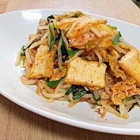 ニラともやしを加えました。ご飯でもお酒でも相性が良く◎、とっても美味しかったです!!豚キムチが好きでよく作りますが、最近は厚揚げ入りが定番です。我が家では、めんつゆとごま油で味付けをしています😄
