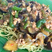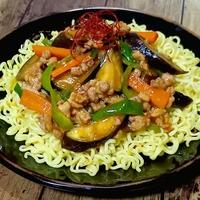 ごま油で香ばしく焼いた麺にコクのある味噌ベースのあんがよく絡み、食欲をそそります。豚ひき肉のジューシーな旨みと茄子の甘みが調和し、ピーマンや人参などの野菜もたっぷり。辛さは豆板醤で好みに調整でき、パリッと焼いた麺とトロッとしたあんかけの食感の違いを楽しめます。うどんや丼にアレンジしても美味しく、家族みんなに大好評の一品です。