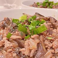 - 4 同じフライパンに(A)を入れたら弱火で熱し、香りが立つまで炒めます。豚ひき肉を入れ中火にしたら火が通るまで炒めます。