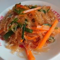 辛さの加減は、ラー油の量をお好みで調整してください。 緑豆春雨は乾燥状態で40gのものをパッケージの表記に従い水で戻して使用しています。