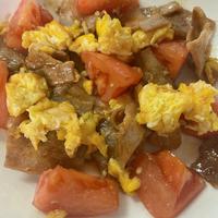 これうまい!豚肉200g、卵3個に増量。オイスターオイルが大さじ1しかなかったのですが、コクがあり、トマトの酸味がなんとも言えず美味かった。木須肉より美味しい気がします。写真撮り忘れ、すみません。