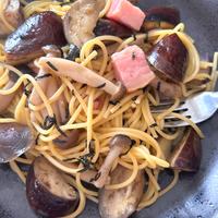 バターとポン酢のコクのある和風スパゲティです。エリンギ、しいたけをプラスしてきのこの和風スパゲティもおすすめです。具材もお家にあるベーコン、ハム、ウィンナーなど入れていただいても美味しく召し上がれますよ。
