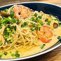 - 5 そこにお好みの固さに茹でたパスタを加え絡ませたら完成です。