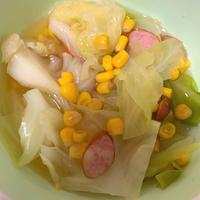 - 3 白菜に火が通ってきたらコーンの水煮を加え、(A)を入れて味を調えます。