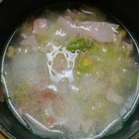 コーンは入れませんでしたが、にんじんを短冊切りで入れました!少し煮込みすぎたのか、味が濃くなってしまいましたが、とても体が温まるスープでした(*´ー`*)