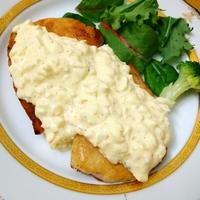 - 5 こんがりし、火が通ったら器に盛り、タルタルソースをかけて完成です。