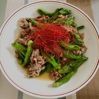 - 6 皿に盛り付け、糸唐辛子を乗せて完成です。