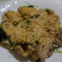 私は1つのボウルで済ませる為に、鶏肉を先にレンジにかけて、後で上に三つ葉を乗せて再度レンジにかけました!!