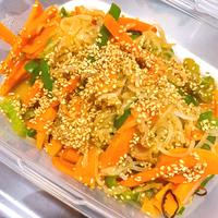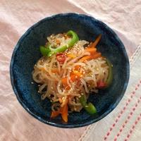 しらたきを使ってきんぴら風の味付けに仕上げました。にんじんとピーマンで彩りよく、きんぴらの甘辛風味が食欲をそそる一品です。ごはんのお供にぴったりですよ。今夜の食卓にいかがでしょうか。ぜひ作ってみてくださいね。