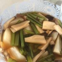 きのこはエリンギで作り、蕪の葉も少し加えて作りました。ネギは省略しました。煮汁の匂い味共に良く、また作りたいです。