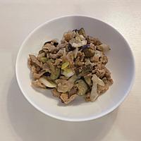 - 3 中火で熱したフライパンにごま油をひき、豚こま切れ肉を入れて、色が変わるまで炒めます。1を入れて、豚こま切れ肉に火が通るまで5分程炒めます。