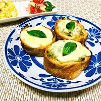 アンチョビソースにバターを混ぜて焼き上げました。とろりと溶けたモッツアレラチーズがアンチョビソースの風味を引き立ててよく合いますよ。ワインのお供にピッタリです。簡単でおいしいのでぜひ作ってみてくださいね。