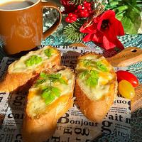- 4 アルミホイルを敷いた天板にフランスパンを並べ、3を塗り、1をのせたら、オーブントースターで焼き色が付くまで5分ほど焼きます。皿に盛り付けパセリをかけてできあがりです。