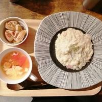 で作りました。ピザ用チーズの代わりに粉チーズで。味付けはレシピ通りでばっちりです。リゾット は0.5合でも大量に出来るのでお腹いっぱいになりました。