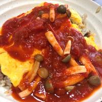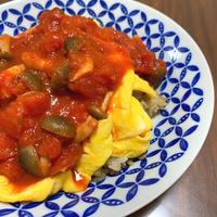 きのこトマトソースのひき肉オムライス レシピ・作り方