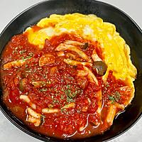 きのこの旨みとトマトの爽やかな酸味が絶妙に調和したソースが特徴的な新感覚オムライスです。いつものケチャップライスとは一味違う、お洒落な仕上がりに。簡単に作れるソースは電子レンジで手軽に調理可能で、ボリューム満点の一皿に大満足。パスタにも合いそうな万能ソースです。椎茸を加えたり、ケチャップや中濃ソースでアレンジしても美味しく仕上がります。
