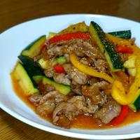 ズッキーニとパプリカと牛肉のオイスターソース炒め レシピ・作り方