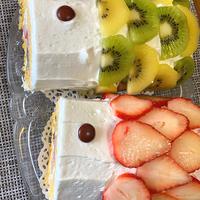 - 準備 キウイは皮をむいておきます。 いちごはヘタを切り取っておきます。 卵は常温に戻しておきます。 クッキングシートで型を作っておきます。 オーブンは170℃に予熱をしておきます。