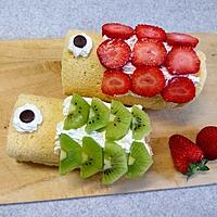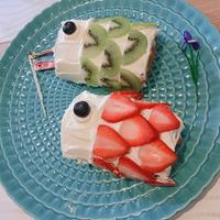 いつものロールケーキをかわいらしくアレンジして、鯉のぼりロールケーキにしました。いちごを使った赤い鯉のぼりと、キウイを使った緑の鯉のぼりです。こどもの日にぴったりですよ。甘い生クリームとフルーツの酸味がよく合い、とてもおいしいので、ぜひ作ってみてくださいね。