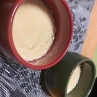 - 2 耐熱性の容器に茶漉しで漉しながら注ぎ、ラップをかけ、火が通り固まるまで500Wの電子レンジで1分30秒程加熱します。