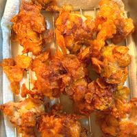 揚げる際クリスピーが剥がれるのがいやだったので、付けたあとギュッギュと丸く成形してみました〜 衣がザクザクで美味♡ 180度に熱したあとは弱火でいいと思います