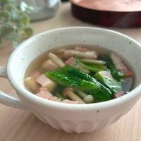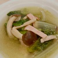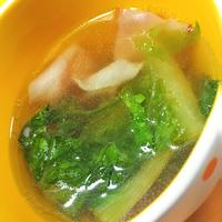 ロメインレタスを使った簡単スープのご紹介です。ロメインレタスは肉厚でシャキシャキと食感がよく、苦味も少ないので加熱してもおいしいですよ。さっと火通しすると食感が残ります。手軽にできるのでぜひ作ってみてくださいね